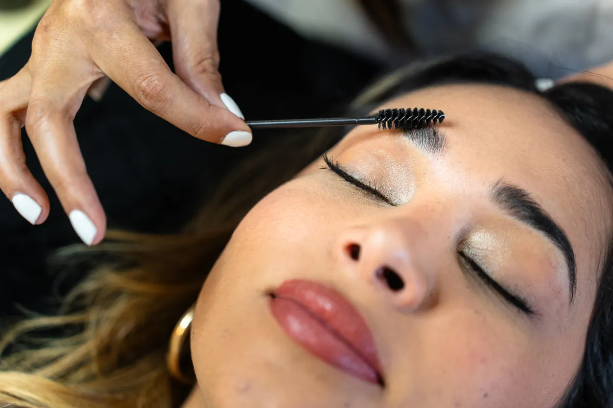 Under et besøk for vippefarge og brynsfarge starter behandlingen med en skånsom rens av vipper og bryn. Deretter påføres fargen nøye for å gi et jevnt og naturlig resultat som fremhever øynene.